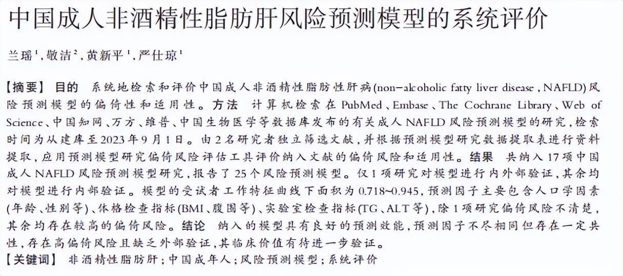 [1]兰瑶.中国成人非酒精性脂肪肝风险预测模型的系统评价,中国疗养医学,2024-07-17